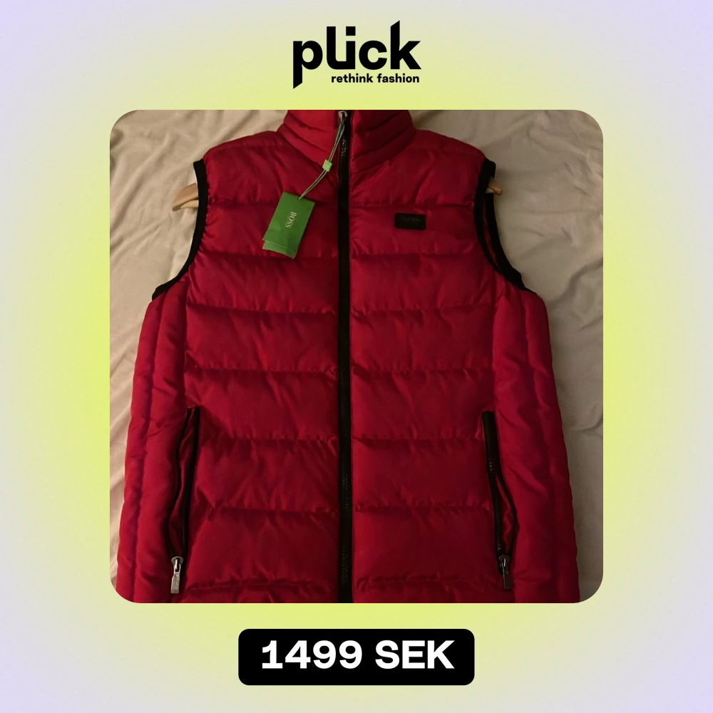 Säljer en snygg röd dunväst från Hugo Boss i nytt skick. Västen har en dragkedja framtill och två praktiska fickor med dragkedjor. Perfekt för höst och vår när du vill hålla dig varm och stilren. Passar både till vardags och lite finare tillfällen. PRISET GÅR ATT DISKUTERA!