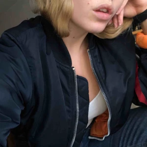 Klassisk bomberjacka i marinblå! Välanvänd favorit men i gott skick. Från originaltillverkaren Alpha Industries. Frakt tillkommer.