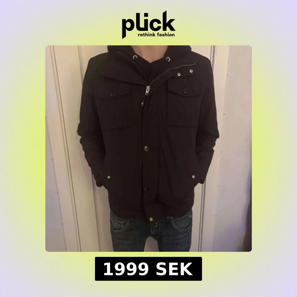 Snygg svart jacka. Jackan har knappar och flera fickor framtill, vilket ger en praktisk och stilren look. Perfekt för kyligare dagar.