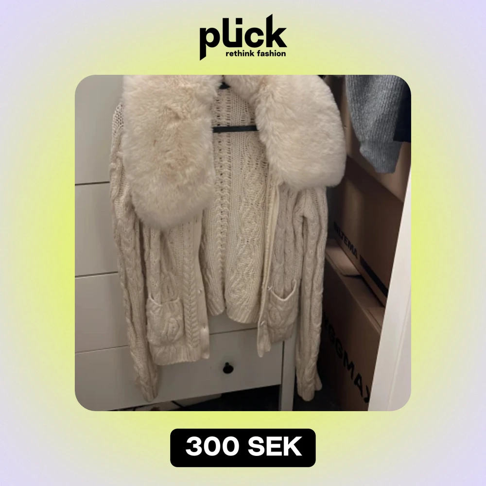 En mysig jacka som är i storlek M. Knapparna som är knäppta är dom som är kvar resten har ramlat av annars är jackan i fint skick