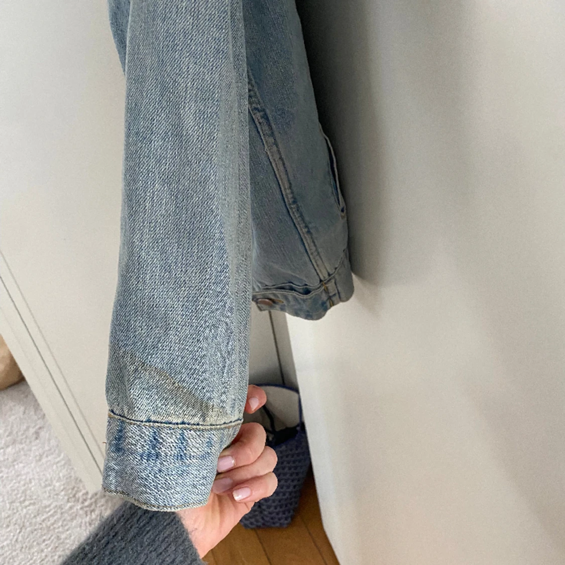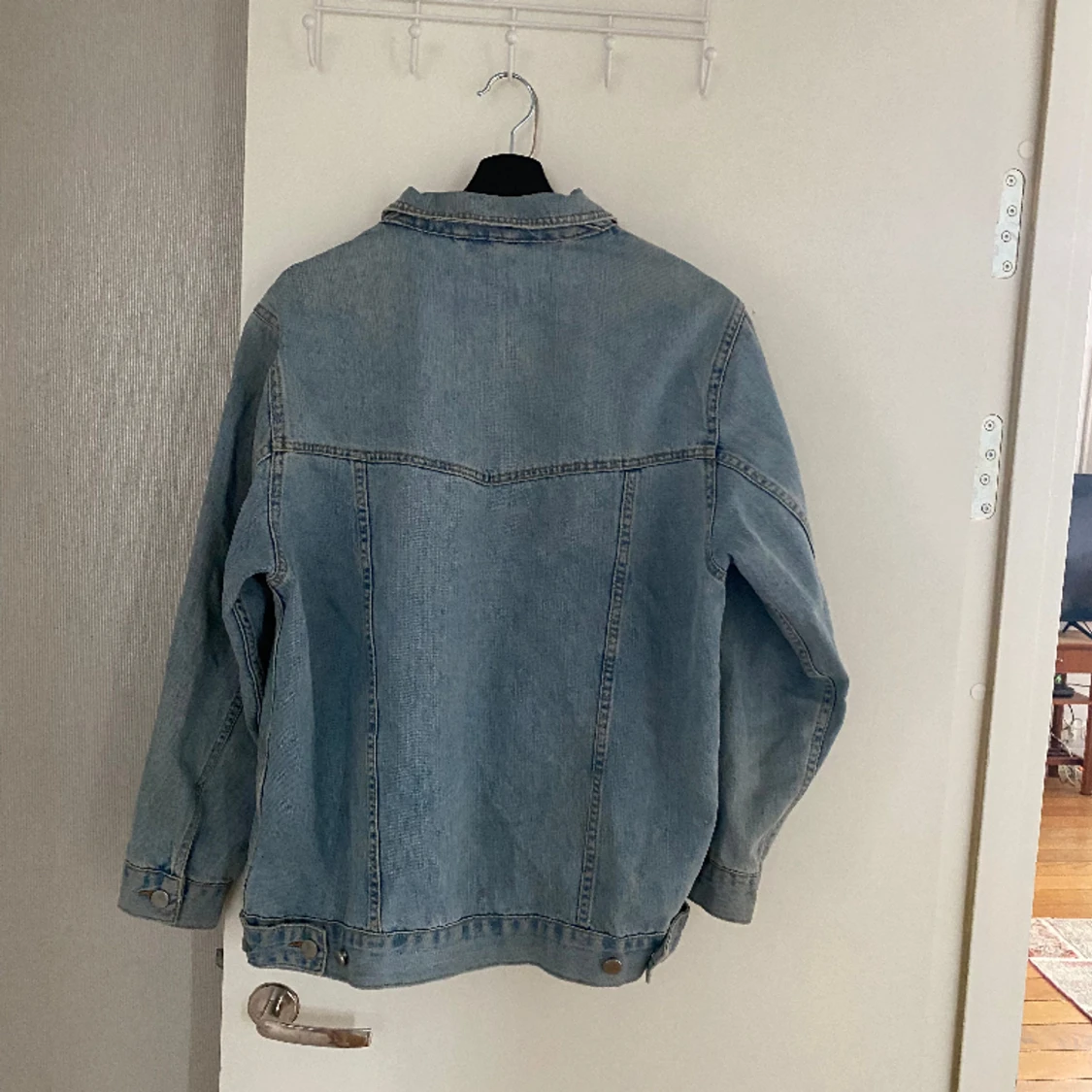 Så snygg over sized jeans jacka!! Perfekt till sommaren, bra skick liten fläck på armen inte provat att tvätta så de borde gå att få bort lätt❤️