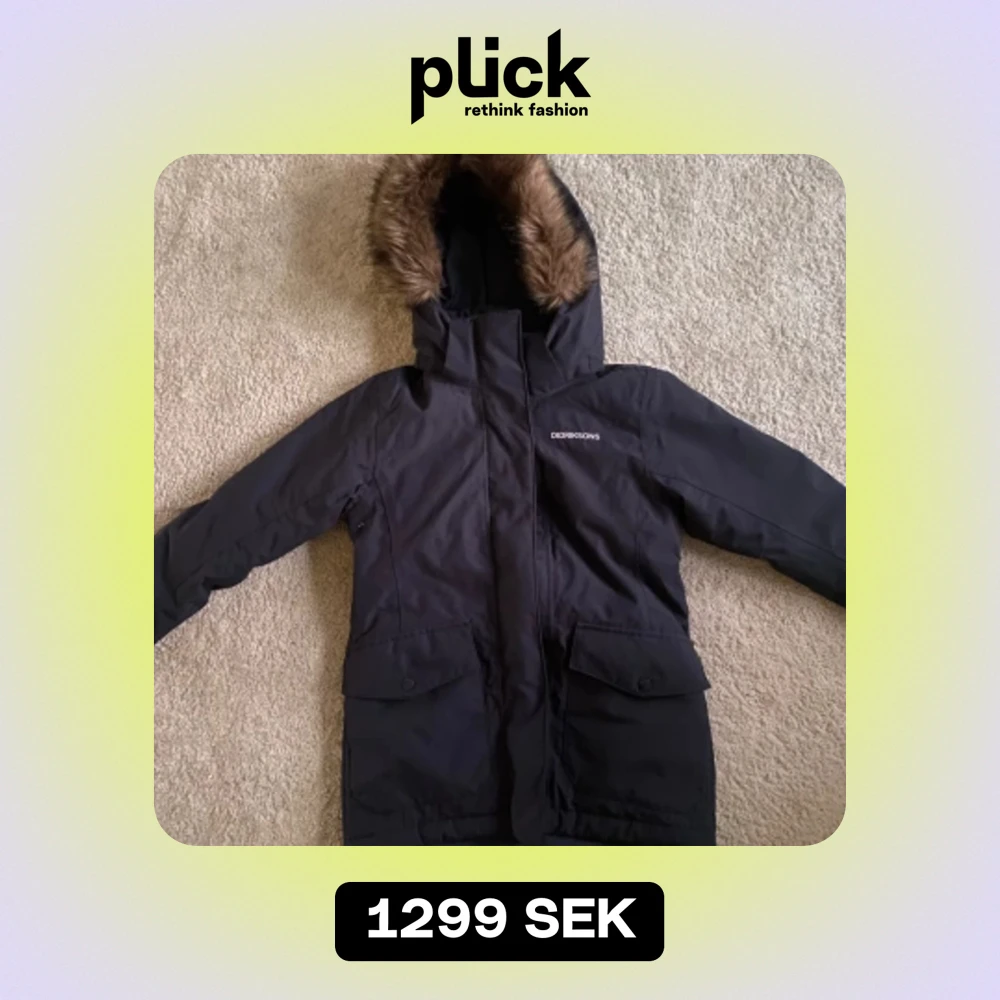 marinblå didrikssons parka i storlek 130, passar pojkar och flickor i åldrarna 8-10 års ålder. nypris 1299kr säljer för 750kr