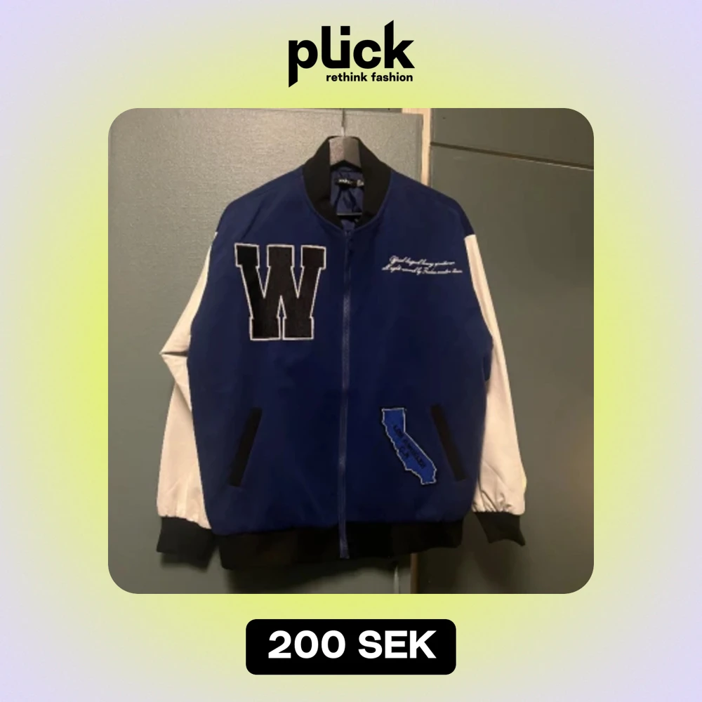 En blå vit college jacka. Inte använd mer en två gånger är i bra skick!! Köpt på boohoo