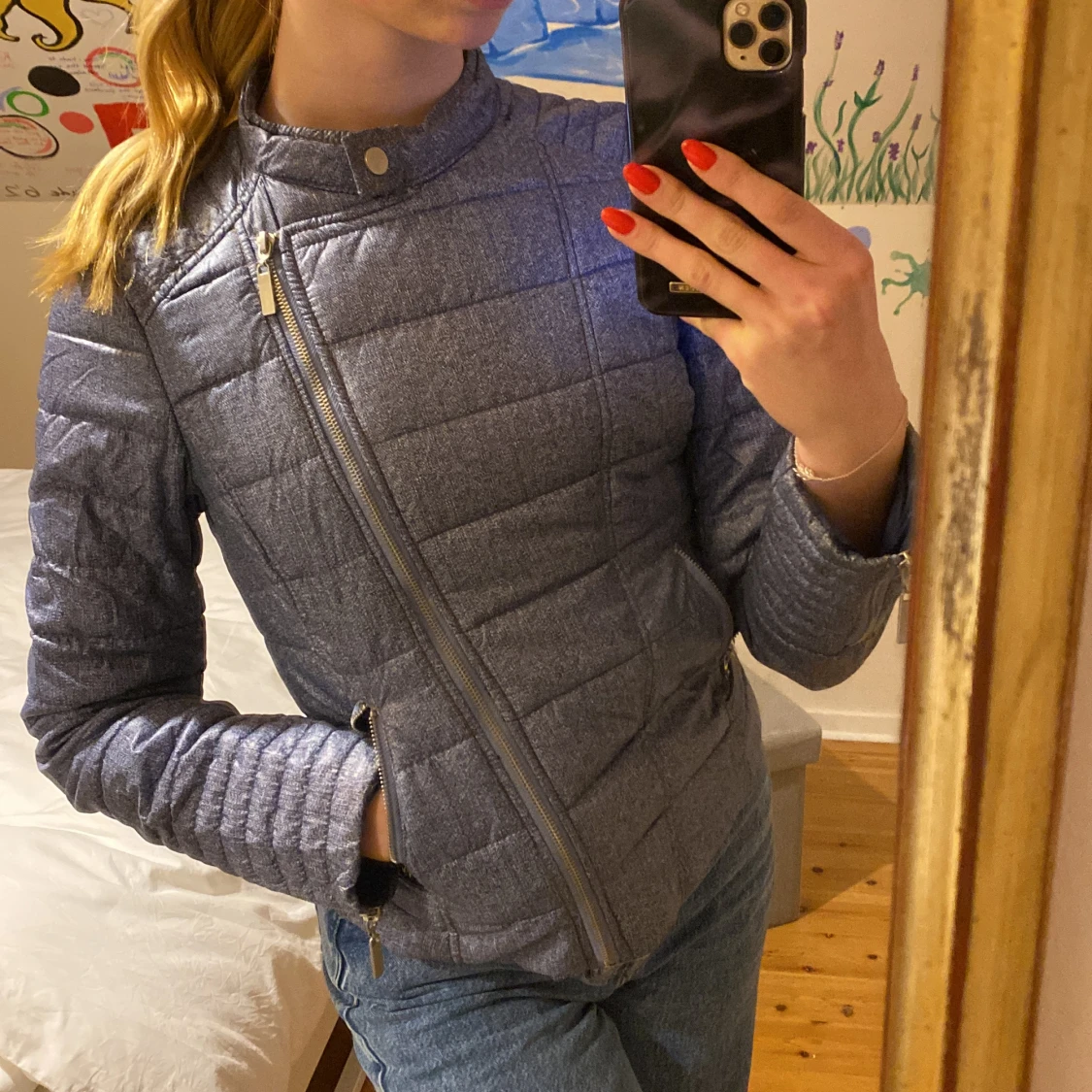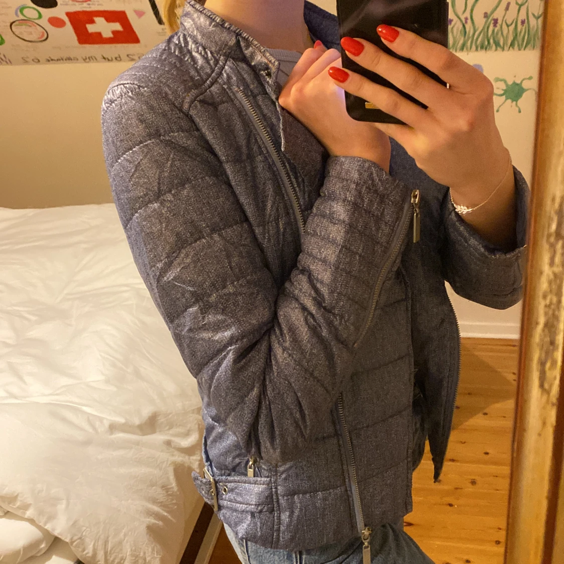 Superunik jacka med spännen! Påminner om en bikerjacka men fylld med din, så varm! Storlek S men passar snarare cs
