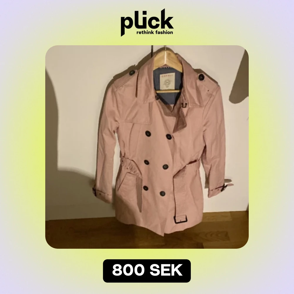 Esprit kappa oanvänd därav det dyrare priset. Spännen vid ärmana, skärp vid midjan och knappar i mitten av jackan som går att knäppa. 2 extra knappar finns med. Nypris 1000kr