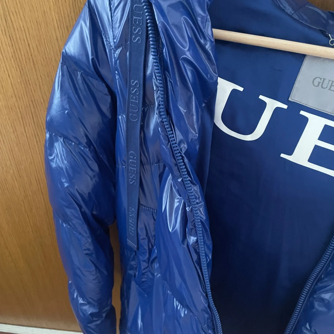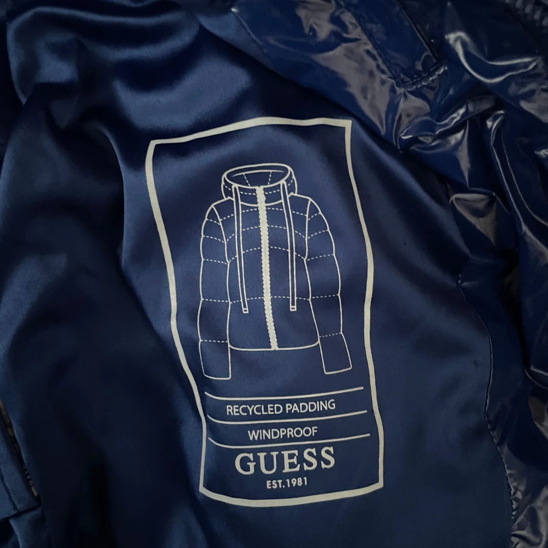 Säljer en snygg blå pufferjacka från Guess. Jackan är vind- och vattentät med återvunnen vaddering. Perfekt för kalla dagar 💖(kan diskutera pris )