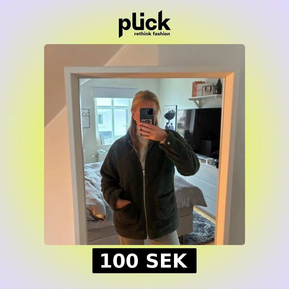 Mysig mörkgrön teddyjacka i storlek M med två stora fickor framtill och dragkedja hela vägen. Jackan har ett hål i innertyget i ena ärmen, den är köpt second hand och den var så när jag köpte den, därav priset! Inga synliga defekter utöver det!