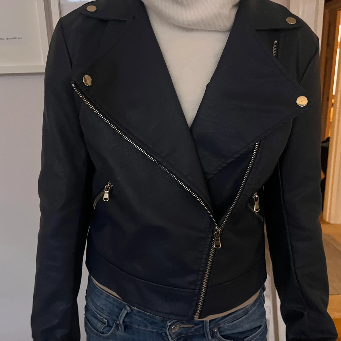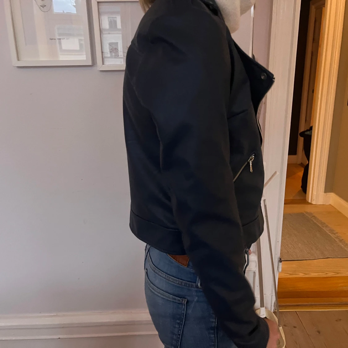 Jätte jätte snygg blå skinnjacka från Le Monelle i Italien. Säljer för den tyvärr är för liten, men den är knappt använd. Sammetstyg på insidan, jätte najs.