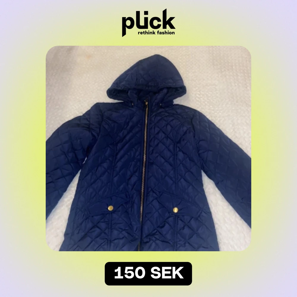 Bra skick marinblå jacka med luva och fickor från Lindex