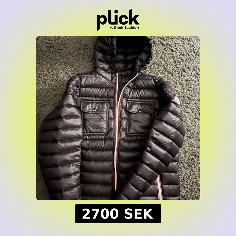 .Snygg svart dunjacka från Moncler (köptes på plick) med huva och dragkedja i rött, vitt och blått. Jackan har två bröstfickor med knappar och ett quiltat mönster som ger en stilren look. Perfekt för kyliga dagar. Storlek 3 och fullt fungerande nfc scann. Hör av er vid fler frågor och funderingar🥂🙌