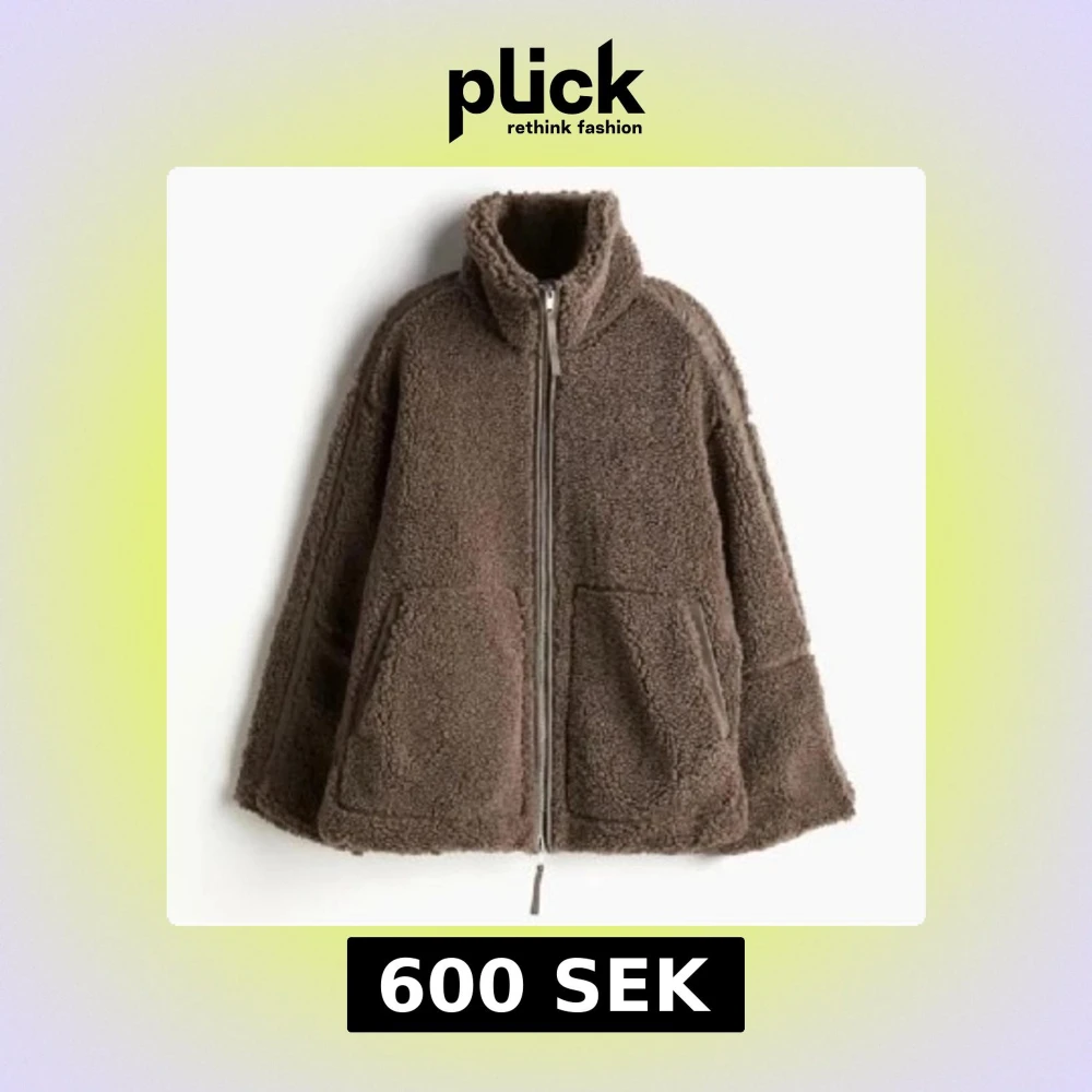 Mysig brun teddyjacka med hög krage och två stora fickor framtill. Jackan har en rak, loose passform och stängs med dragkedja. Perfekt för kyliga dagar när du vill vara både varm och snygg.