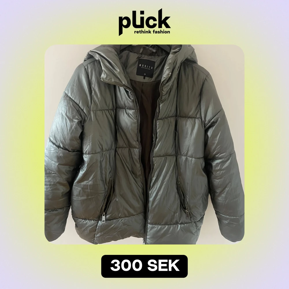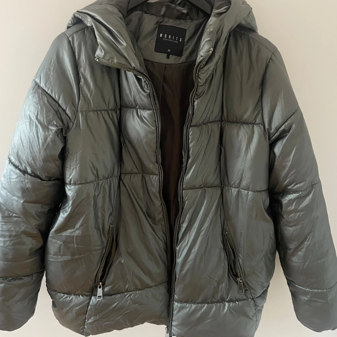 En grön och glansig pufferjacka perfekt till vintern i mycket bra skick😊den är ursprungligen från mohito collection, ganska stor i storleken S/M