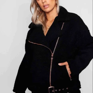 Säljer min oanvända ”Plus Teddy Faux Fur Biker” i Stl 44/18. Från Boohoo. Fel storlek för mig , annars en superfin jacka!