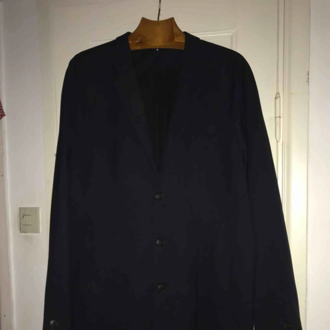 Stilig marinblå kappa från Whyred, köptes förra året för ca 2500kr. Kappan är i nyskick då den bara använts 2 gånger. Fler bilder kan skickas vid förfrågan.