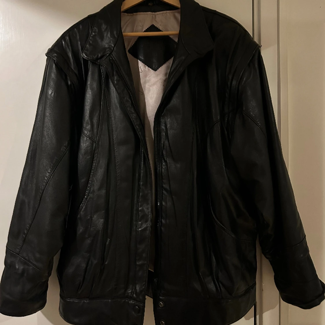 Svart äkta läderjacka som är använd ett fåtal gånger.