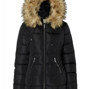 Trendig vinterjacka i en lite längre modell med en avtagbar fuskpälskrage
