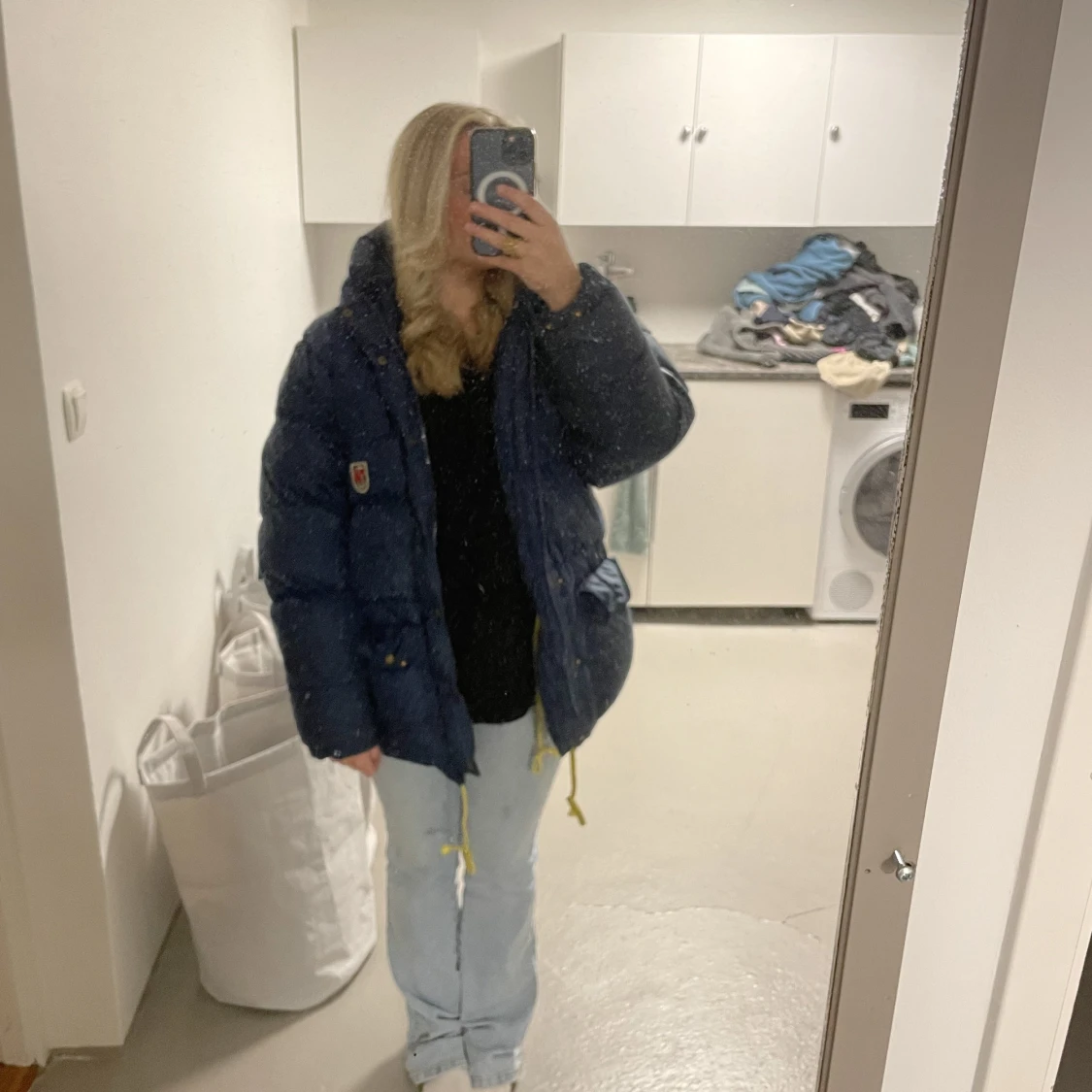 Fjällräven Expedition Dunjacka W i färgen marinblå , fins en liten reva som är lagad på vänster ficka. jag på bilden är 158cm lång. Priset kan diskuteras vid intresse.