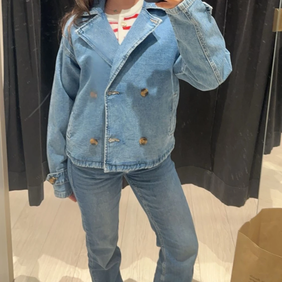 Säljer denna populära jeansjacka i storlek XS då den inte kommer till användning❤️ använd fåtal gånger och i nyskick❤️ nypris 599kr men säljer för 450kr, pris kan diskuteras