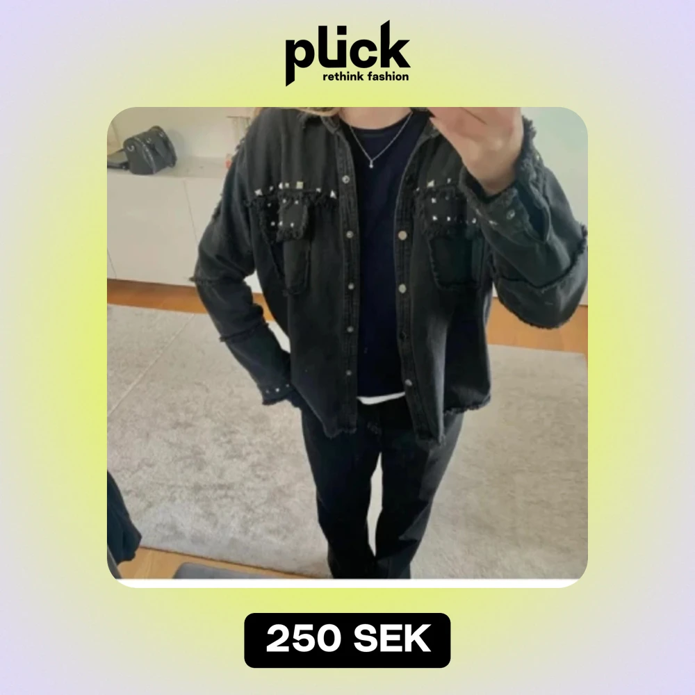 Mörkgrå tunn jeans jacka med nittar från zara. Köpt för 300kr. Strl S. Pris diskuterbart. ( lånad bild, skriv för mer bilder ) 😘😘