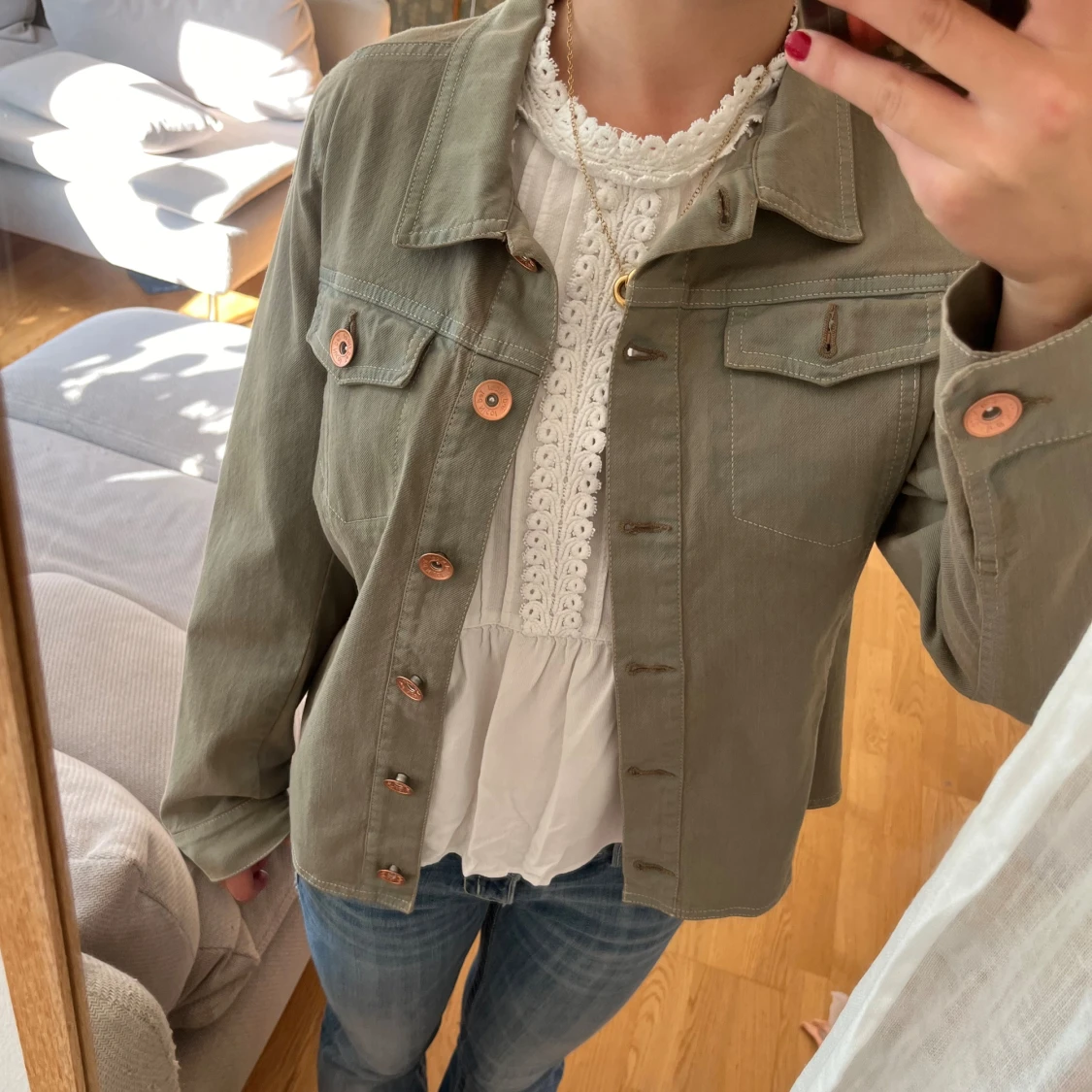 Säljer en skitsnygg olivgrön jacka med knappar framtill. Helt ny och är aldrig använd. Perfekt för vår och höst!