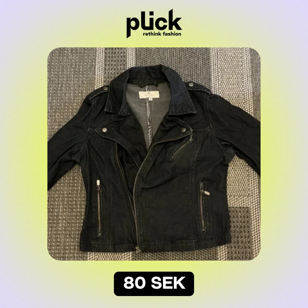 Svart jeansjacka med coola detaljer men som jag aldrig använder Storlek M men passar även mig som brukar ha storlek S