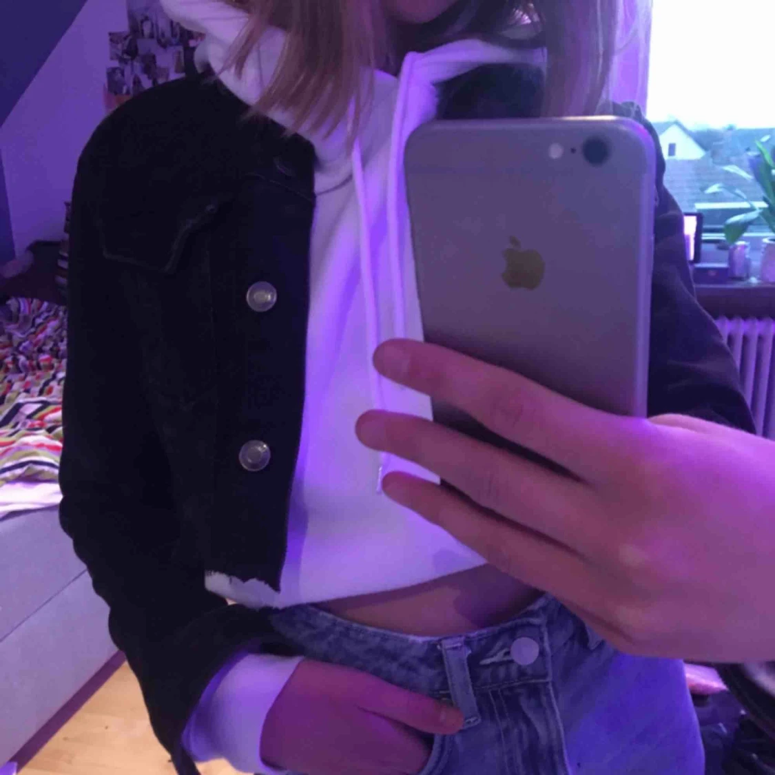 Avklippt svart jeansjcka, riktigt fet men används inte av mig. Bra skick, vet inte vart jag köpte den först... Frakt kostar 60kr