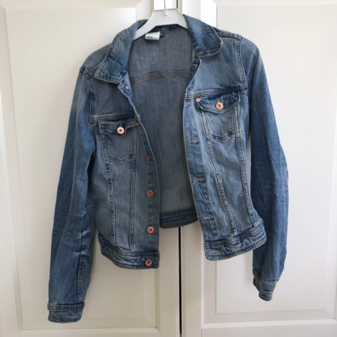 Säljer en jeansjacka från HM. Den är av en tajtare och kortare modell som passar bra till det mesta!