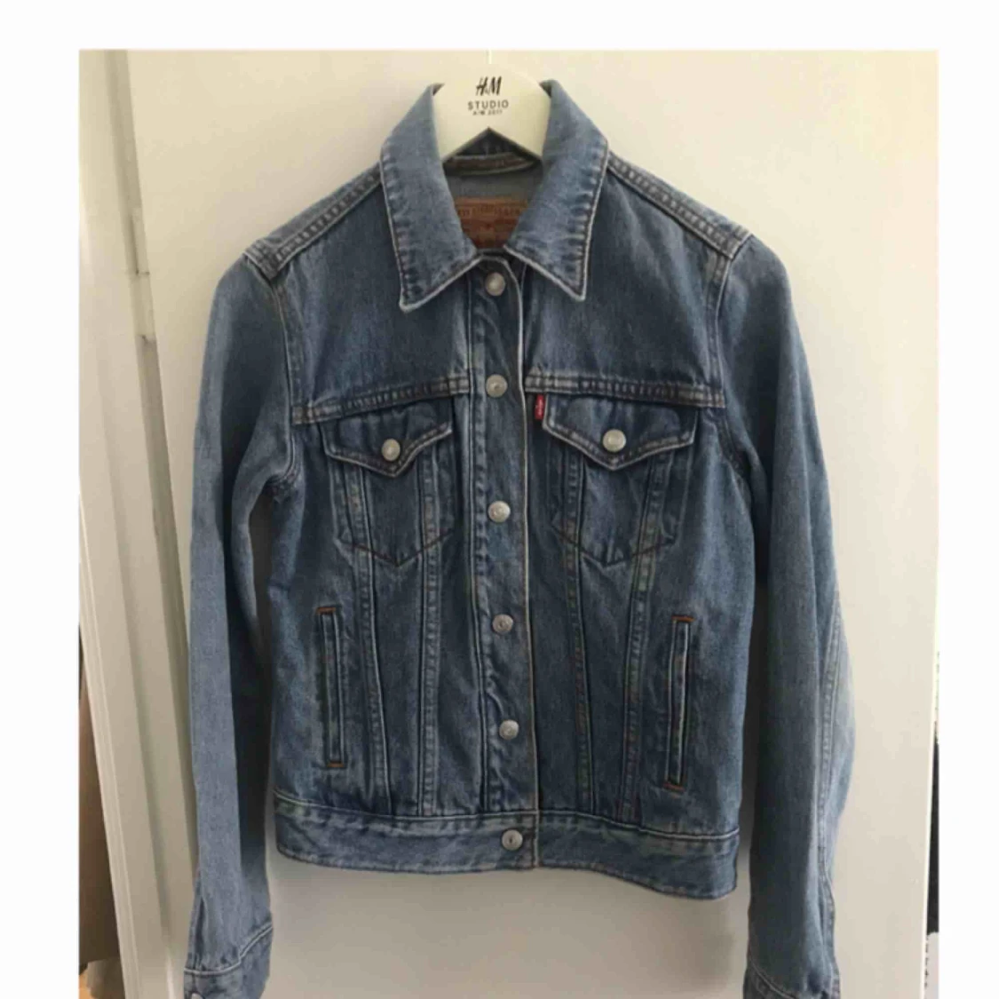 Grön jeansjacka från Zara - Säljer en grön jeansjacka från Zara med två stora fickor framtill och klassisk krage. Jackan har knappar hela vägen och är i en loose passform, perfekt att slänga på över en hoodie. Materialet är robust denim och färgen är en snygg, lite urtvättad grön.