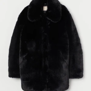 svart fuskpäls från H&M sparsamt använd köpt för 599kr. XS men oversize den är som en mellankort kappa. går till knäna på mig som är 163.