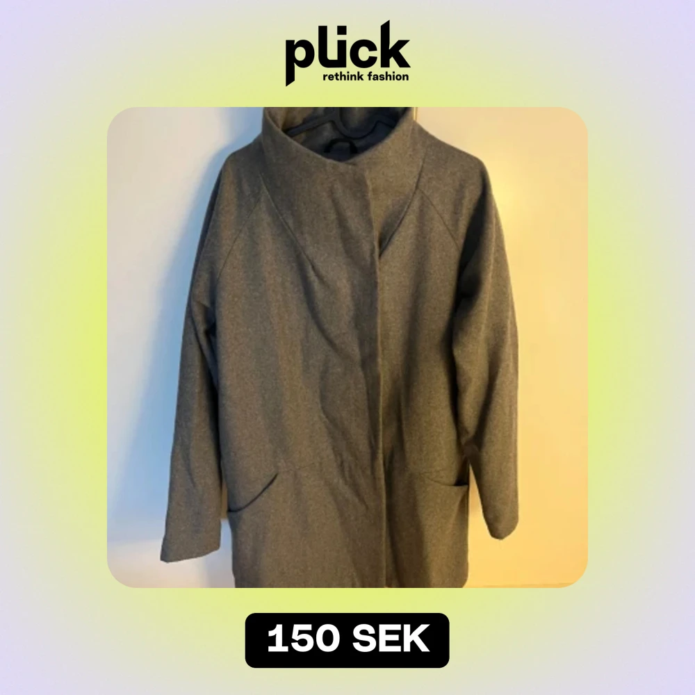 Så snygg grå kappa i ull-blandning. Fickan har gått sönder lite - lätt att laga och inget som syns. I övrigt sparsamt använd - fint, använt skick.