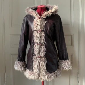 Otroligt fin mörklila penny lane/afghan coat. Fint skick! Storlek 34/36 men jag som vanligtvis har 38 passar den bra på! Äkta läder men fuskpäls. Fodrad så håller värmen bra under vintern! Underbar jacka som behöver nytt hem!!!