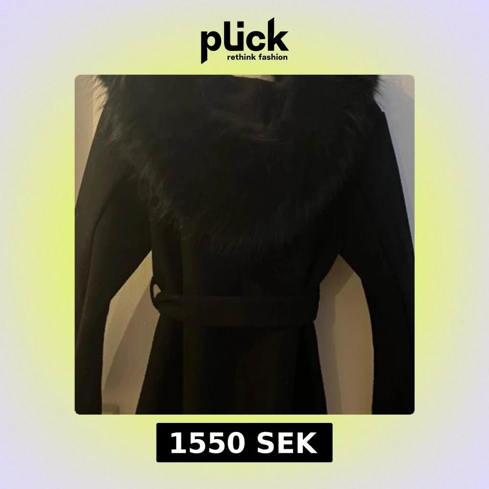 Snygg svart kappa med bred krage i äktapäls och knytbälte i midjan. Jackan har lång ärm och en stilren, rak siluett som ger en cool vibe. Perfekt för dig som vill ha en elegant look med extra edge under kyliga dagar. Den är lite nopprig men går lätt att få bort säljer den pågrund av att den är förliten kommer ej ihåg vart jag köpt den pris går att diskutera.