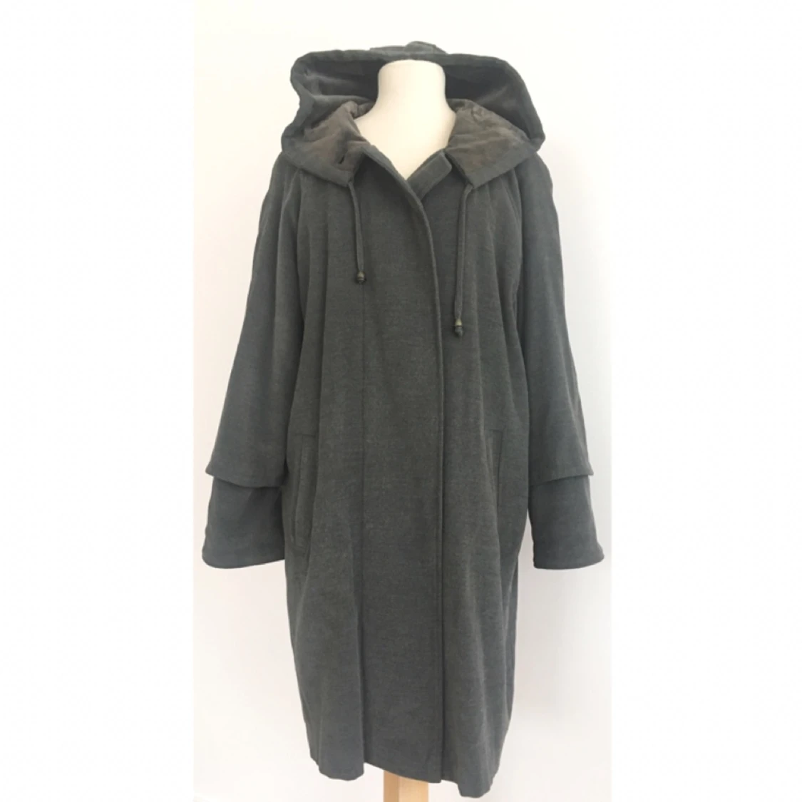 Mysig oversize-kappa med huva. Märke: Club Line Storlek: 36 Skick: Mycket gott. Sparsamt använd. Pris: 300 kronor eller bud. Frakt: Betalas av köparen. Mängdrabatt och samfrakt vid köp av flera plagg.