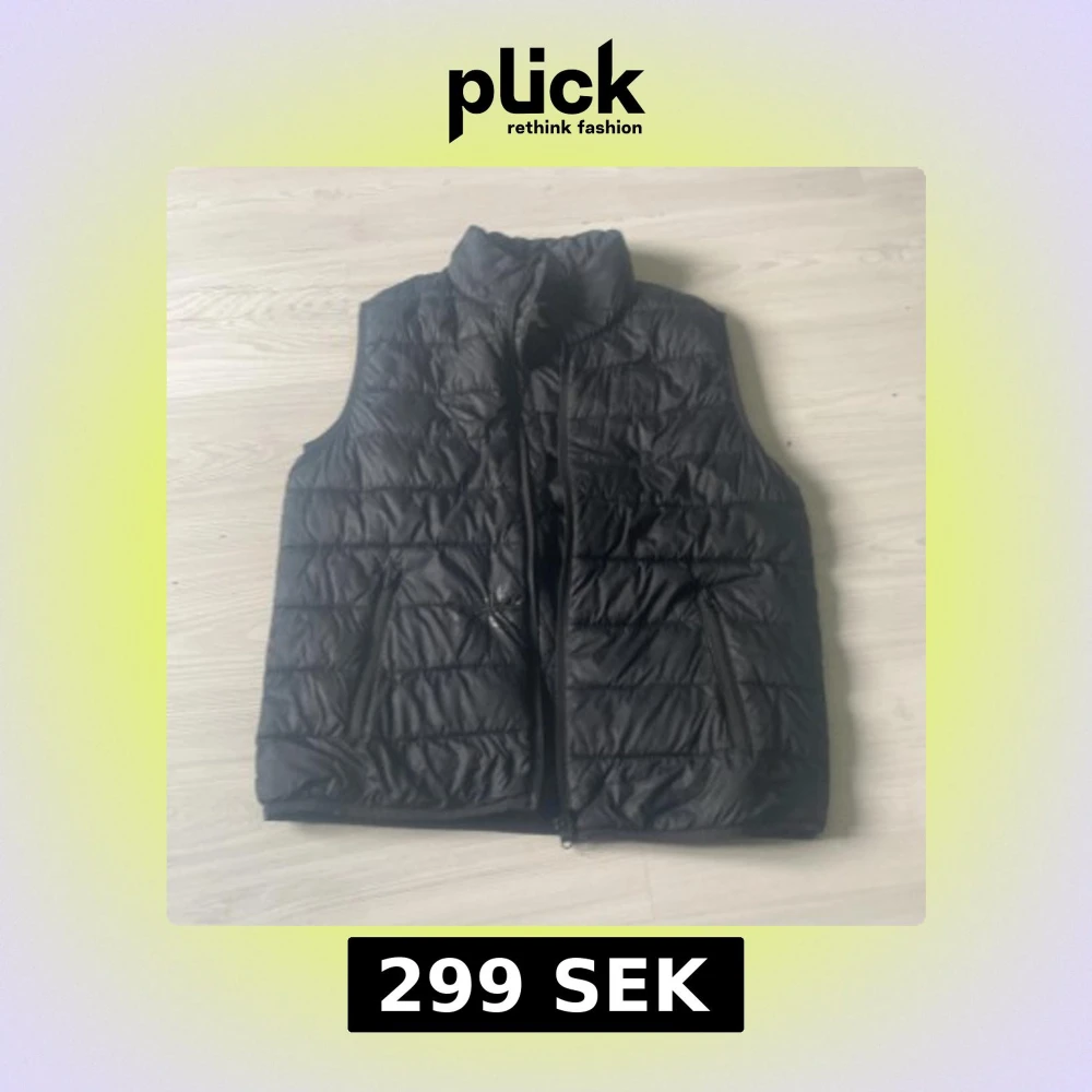 Svart quiltad dunväst från Kappahl i storlek 170. Västen har hög krage, två dragkedjefickor och stängs med dragkedja framtill. Perfekt att slänga över en hoodie för extra värme. Snygg och enkel design som funkar till det mesta.