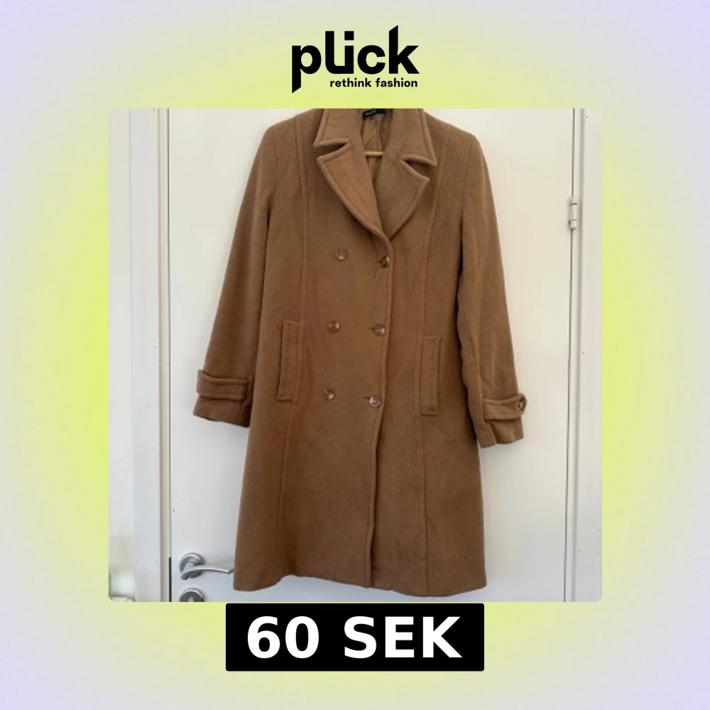 Säljer en stilren beige kappa från KappAhl med klassisk krage och knappar framtill. Kappan har långa ärmar med dekorativa knappar vid ärmsluten. Perfekt för höst och vår!