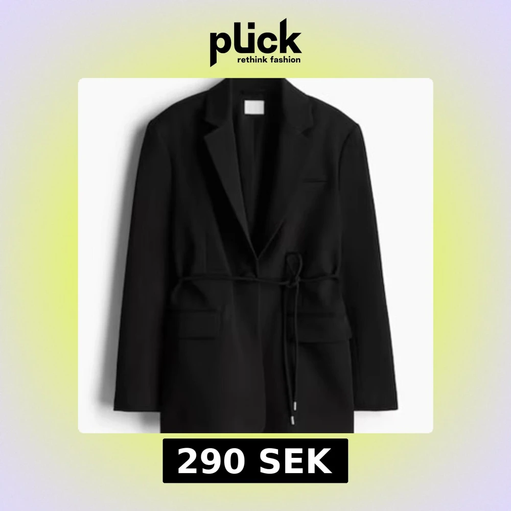 Svart kavaj med knytband i midjan från H&M. Aldrig använd, prislapp kvar . Slutsåld nypris:399