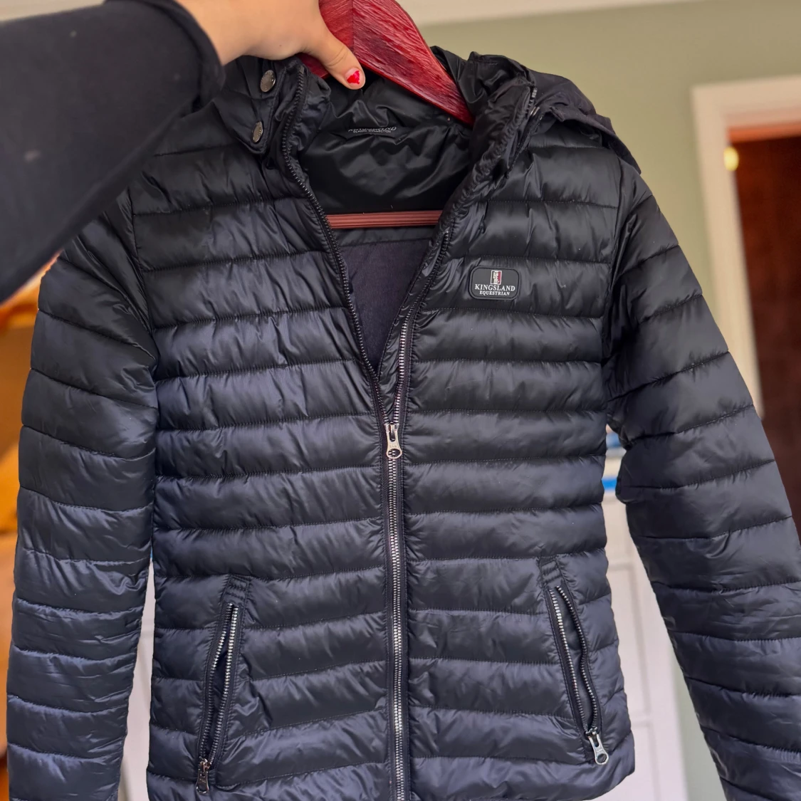 marin pufferjacka från Kingsland med huva och dragkedja framtill. Jackan har två fickor med dragkedja och quiltad design. Materialet är 100% nylon på utsidan och 100% polyester i fodret. Perfekt för kyliga dagar och snygg streetstil. Jackan är använd max 3/4 gånger och är i jättefint skick. Storlek XS men passar mig som normalt sett har s/m i jackor. Nypris 1899 mitt pris 800.