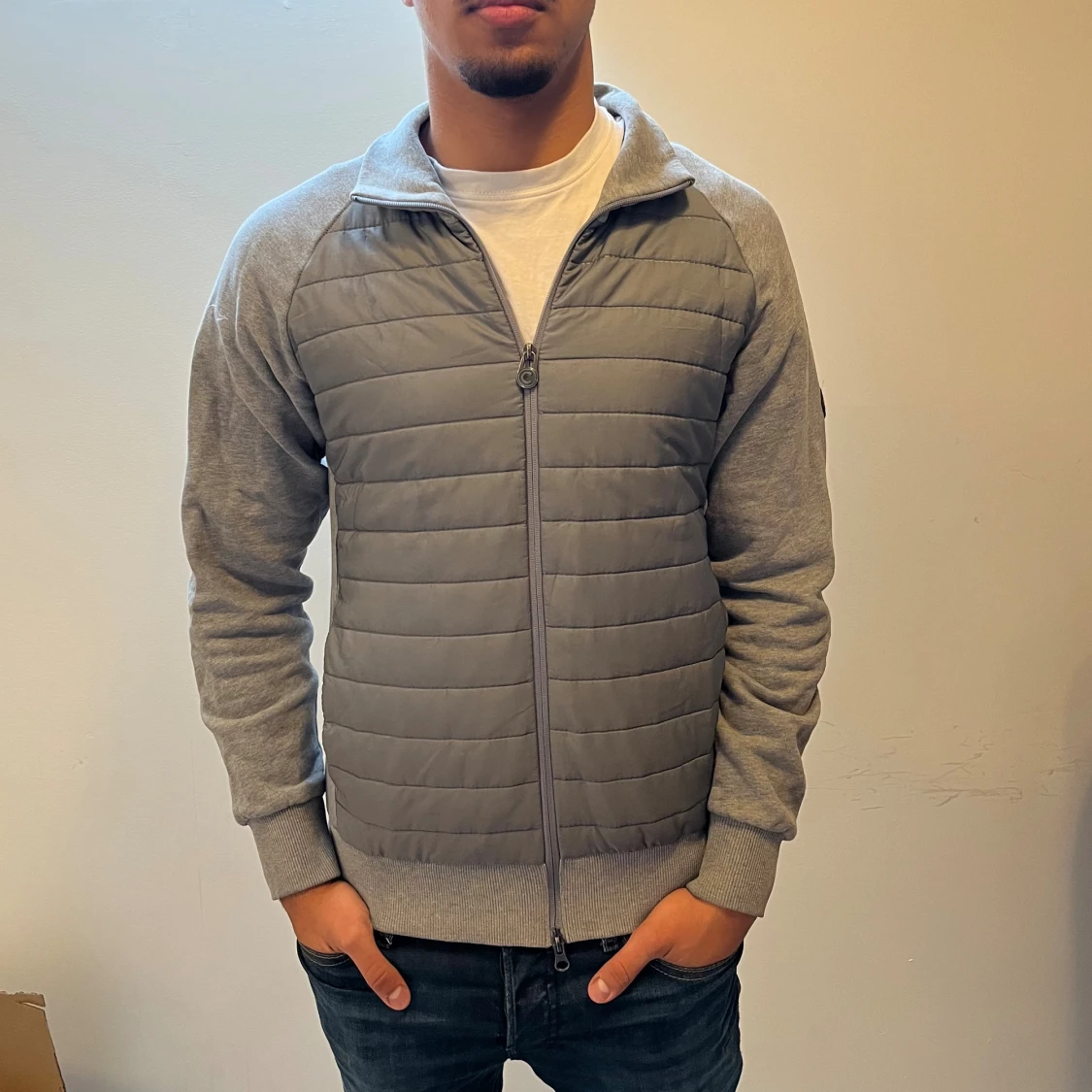 Snygg grå jacka från Colmar med quiltad front och rygg, samt mjuka ärmar och sidor i sweatshirtmaterial. Jackan har hel dragkedja och ribbade muddar. Perfekt för dig som gillar en clean och sportig look. NYPRIS:3999Kr, Mitt pris:1399Kr ✅