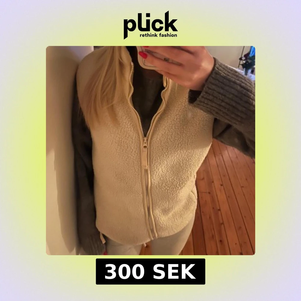 Säljer en mysig krämvit/ beige fleeceväst med dragkedja framtill. Fickor med dragkedja. Perfket för skidresor.