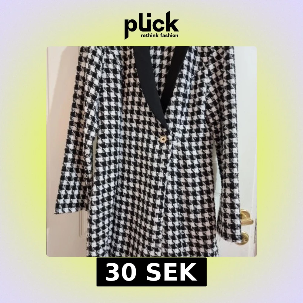 Snygg svartvit rutig kappa från Shein med en elegant svart krage och en dekorativ guldknapp. Perfekt för att ge din outfit en stilfull touch.