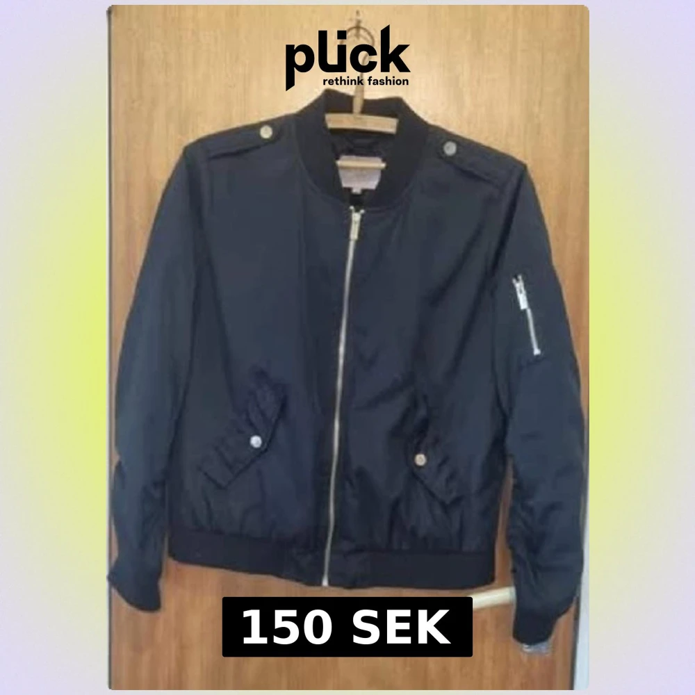 Snygg svart bomberjacka med silverfärgad dragkedja framtill och på ärmen. Jackan har ribbade muddar, två fickor med knappstängning och detaljer på axlarna. Perfekt för dig som gillar en stilren och cool look.
