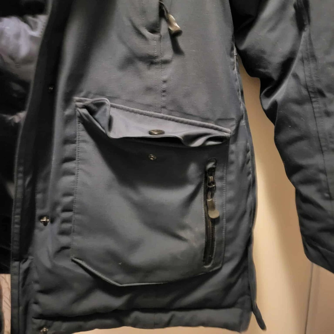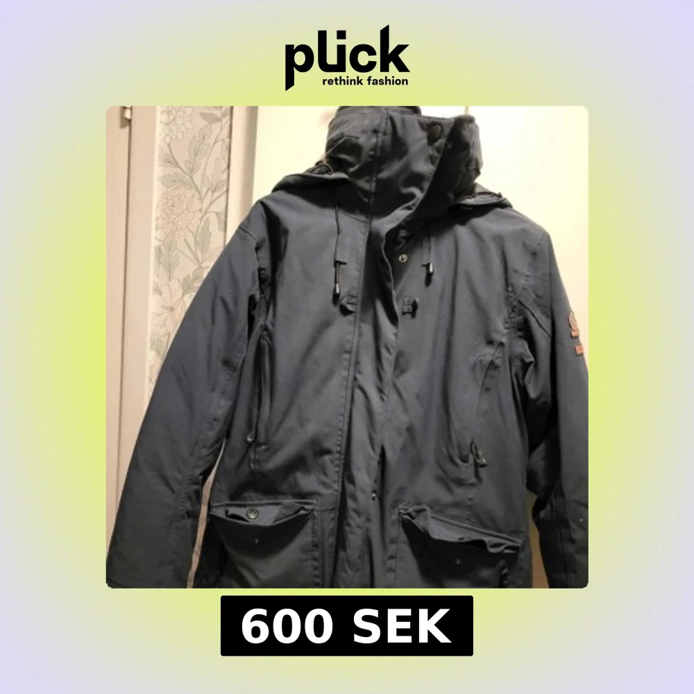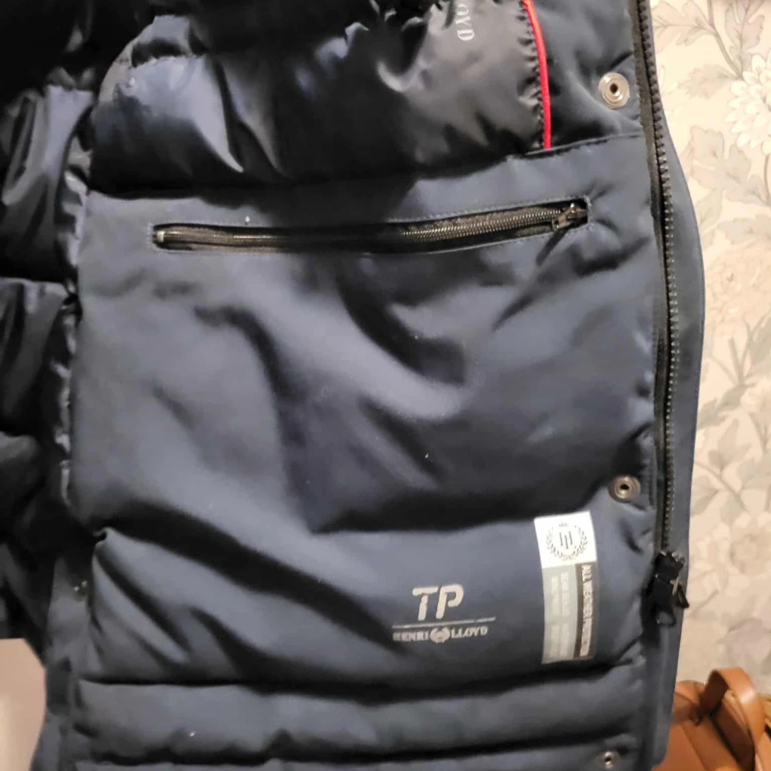 Vinterjacka från Henri Lloyd i mörkblå färg, storlek L. Jackan har huva, snörning vid halsen, flera fickor med både dragkedja och knappar. Använd två gånger.