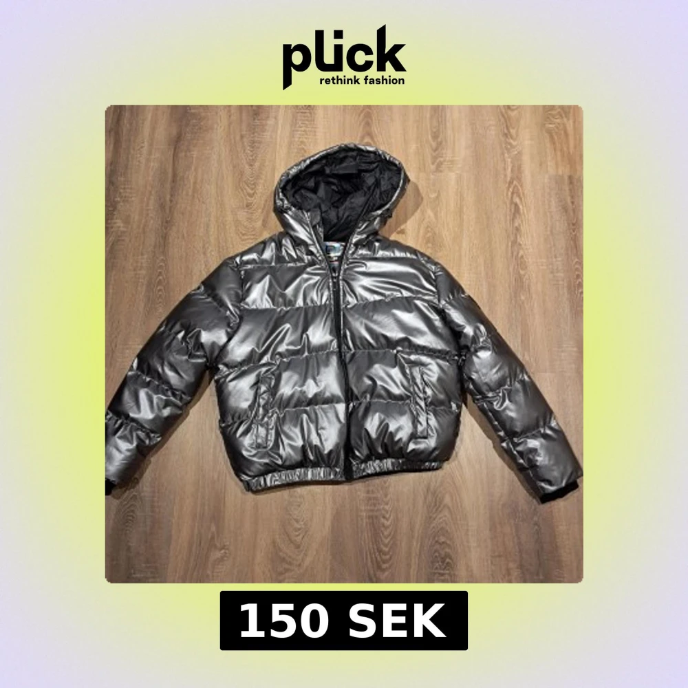 Snygg och glansig silverfärgad pufferjacka från Ombre med huva och dragkedja. Jackan har två stora fickor framtill och elastisk nederkant. Perfekt för kalla dagar när du vill sticka ut lite extra. Den är billigt eftersom den var använt en gång och jag vill inte ha den längre