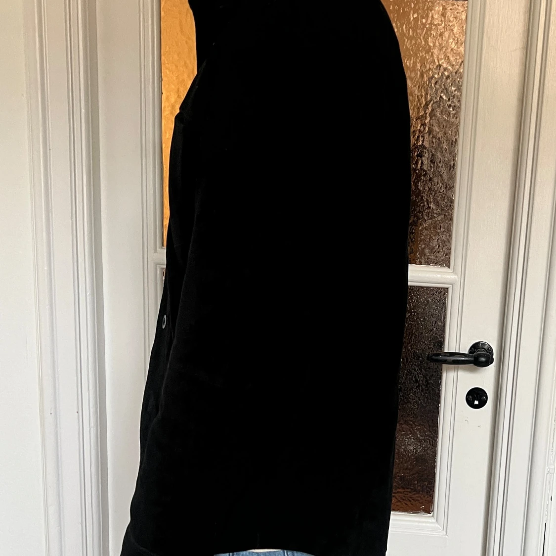 Snygg svart mockajacka/overshirt med knappar framtill och en bröstficka. Perfekt för lager-på-lager-stil och passar till många olika outfits. Enkelt och stilrent plagg för alla tillfällen. Storlek 52, passar även 50. Se mina övriga annonser för fler grymma plagg!