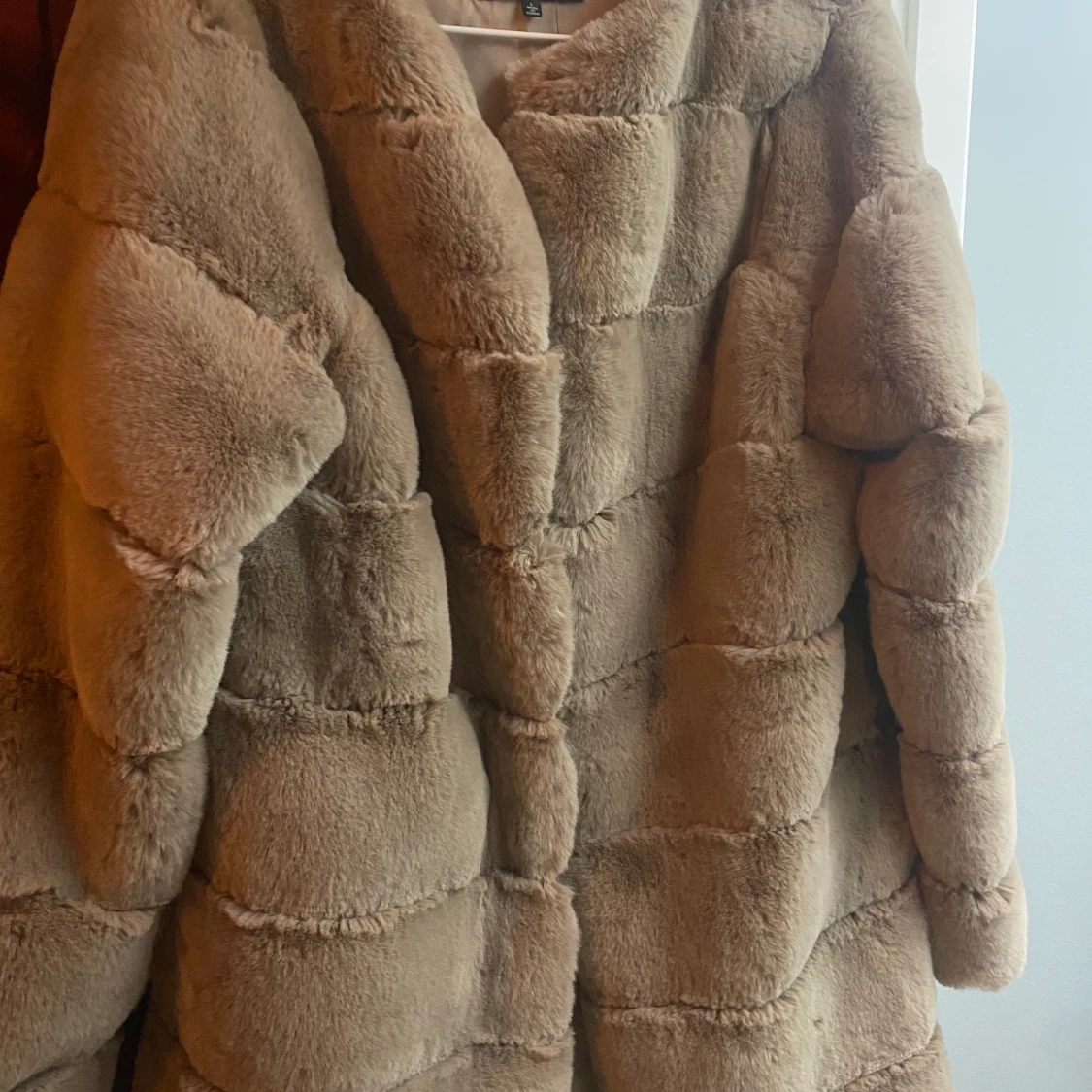 Stor varm kappa i fuskpäls från fashionnova. Strl L (passar även mindre för oversize look). Aldrig använd. Hämtas i hallonbergen.