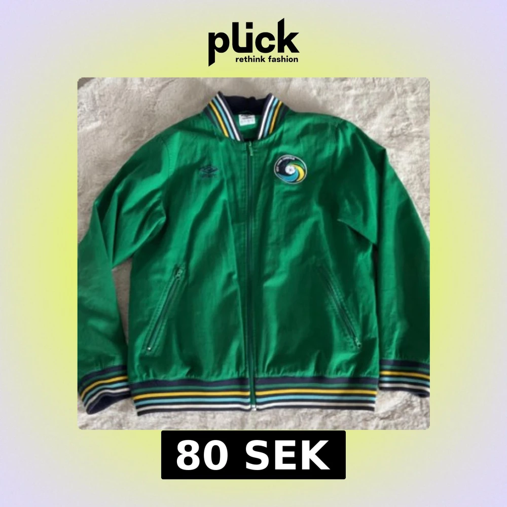Snygg grön bomberjacka från Umbro med broderad logga och New York Cosmos-märke på bröstet. Jackan har dragkedja framtill, randiga muddar i blått, gult och vitt samt två fickor med dragkedja. Perfekt för dig som gillar sportig stil.