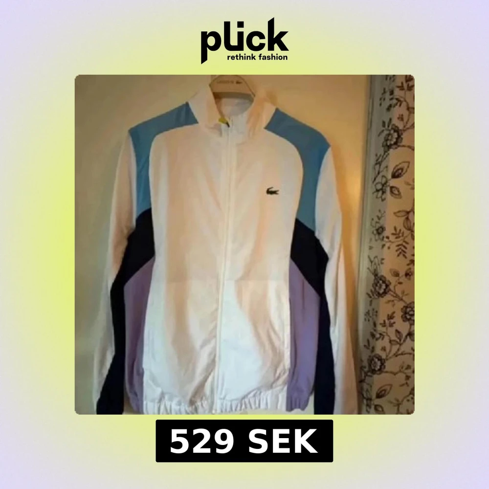En riktigt snygg vindjacka från Lacoste köpt på nätet för cirka 1 år sen. Jag använder inte den då jag har bytt stil. Den är använd cirka 6-7 gånger. Den är helt ny och ligger bara nu i garderoben.