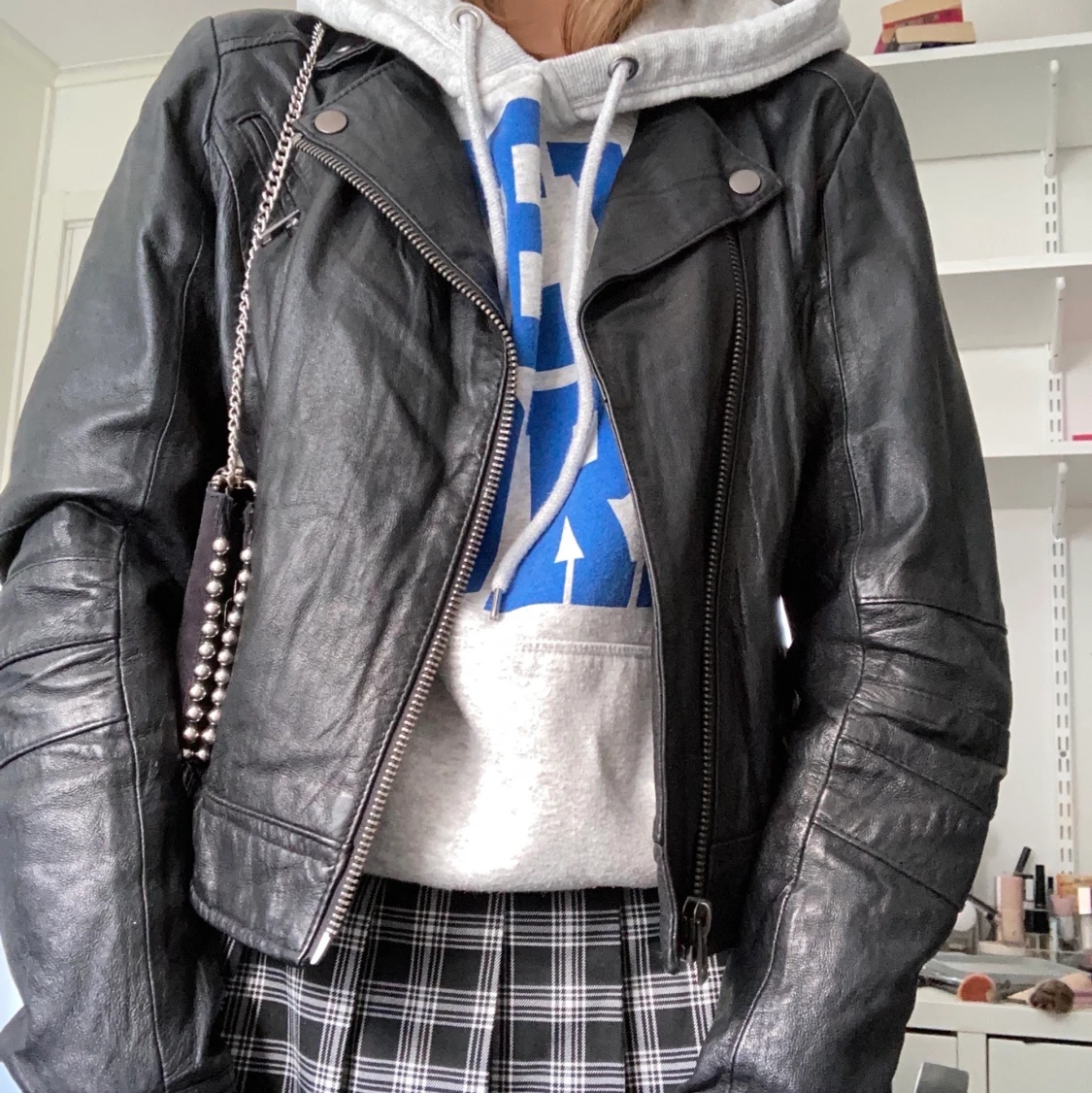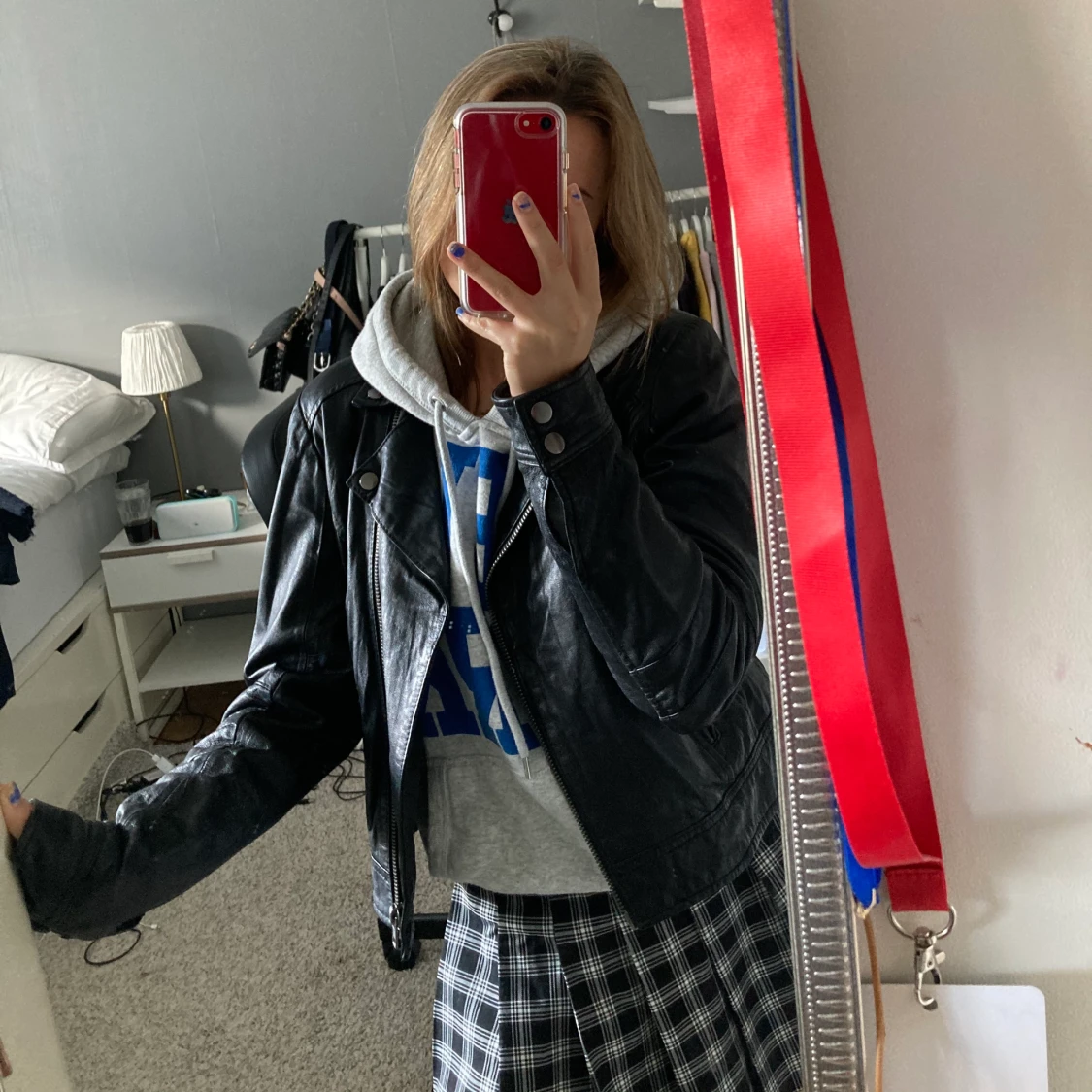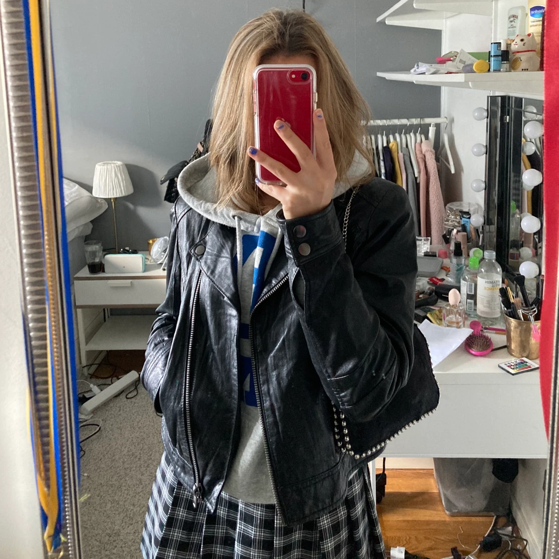 Så snygg skinnjacka i äkta skinn, storlek 36 men passar även mindre om man vill ha lite oversized!!
