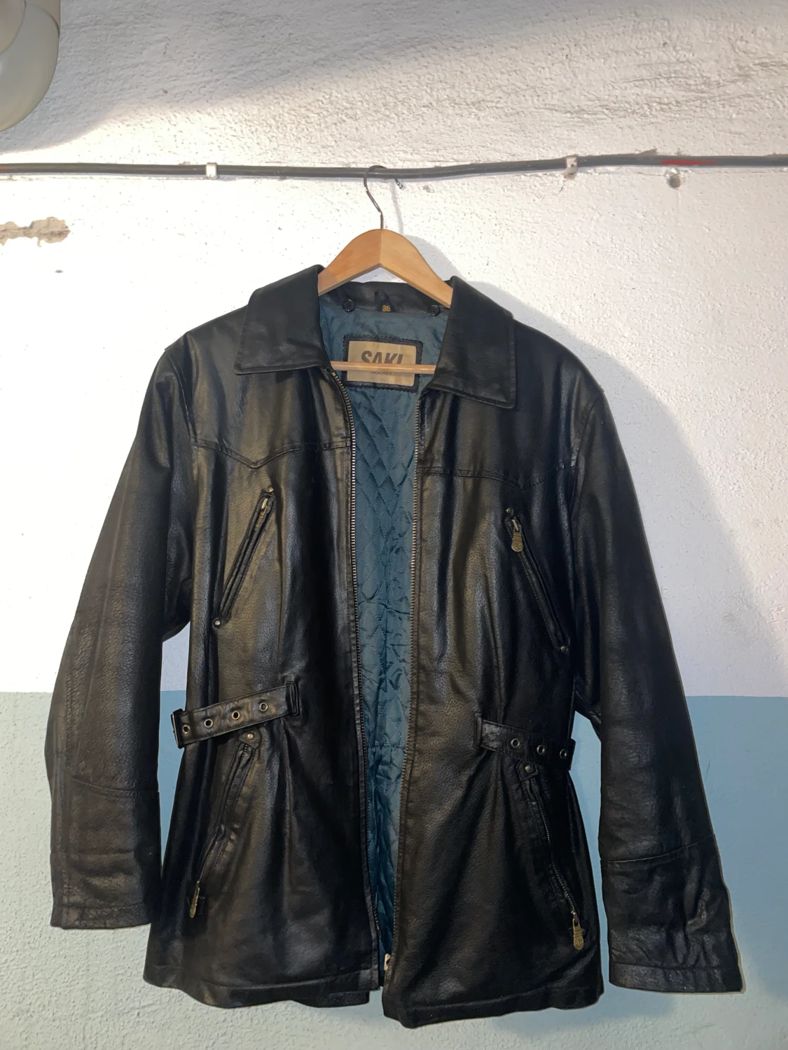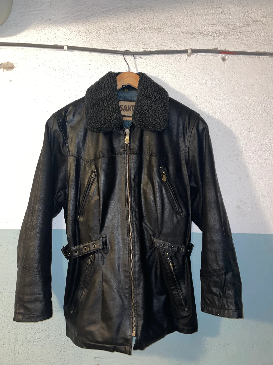 Saki läderjacka i fint skick, storlek 36 men går att justera lite i midjan. Har även en pälskrage som går att ta av och sätta på.