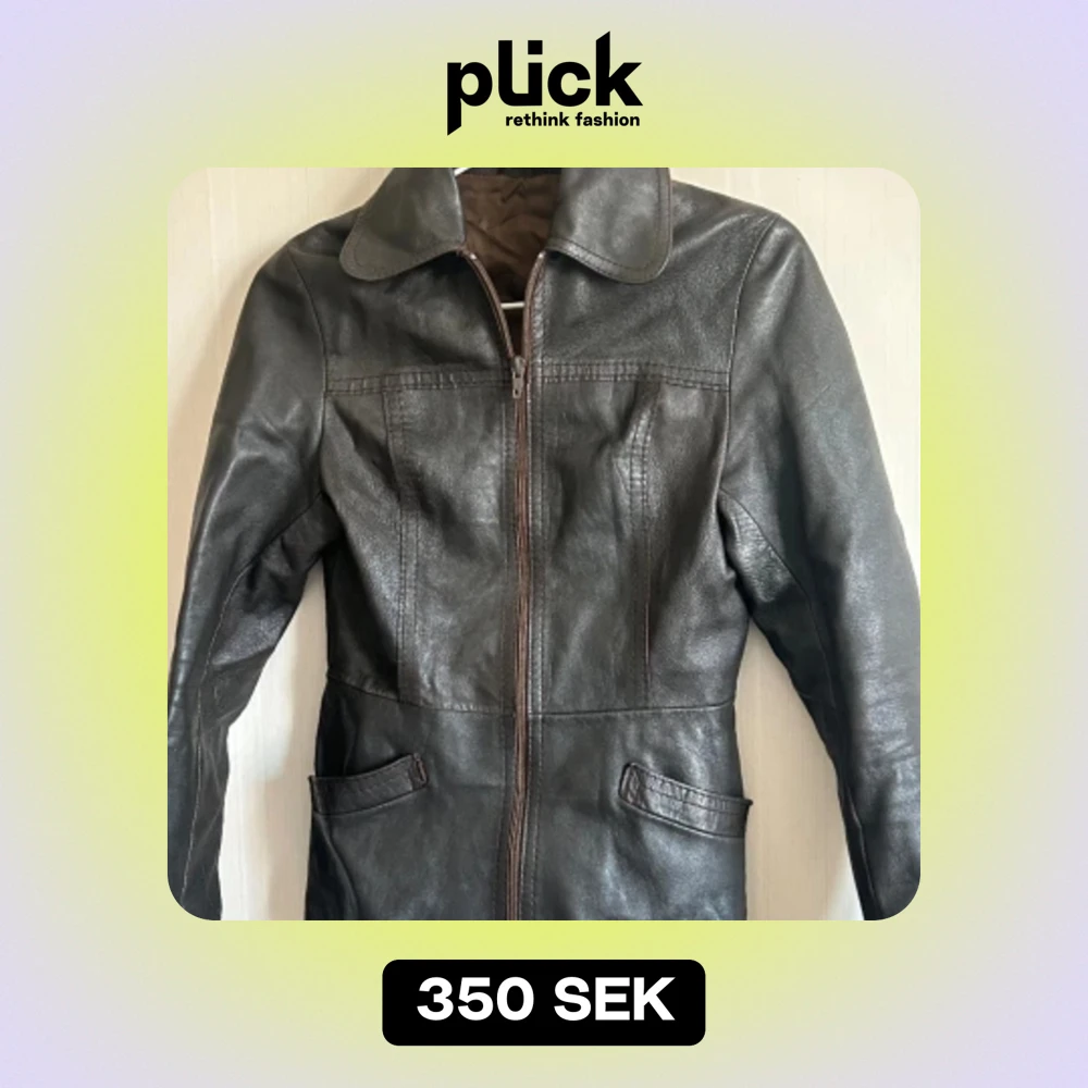 Smal brun skinnjacka Står inget märke, men den är i bra skick och god kvalitet Köpt vintage i Norge